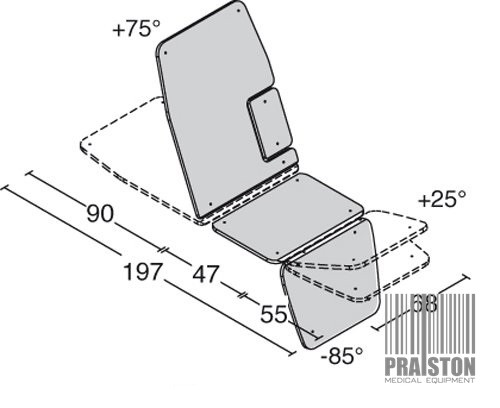 - Regulacja sekcji pleców/tułowia: 0° do 75°,