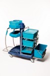 Wózek serwisowy - doskonały do zastosowania w szpitalnictwie i dużych centrach handlowych. Zastosowanie do wielkości powierzchni: od 0 do 10000 m. kw. Długość 115 cm, szerokość 52 cm, waga 25,7 cm, wysokość 112 cm.
