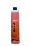 Środek do czyszczenia pomieszczeń sanitarnych. Wetrok Reocid jest uniwersalnym środkiem do czyszczenia i pielęgnacji, o przyjemnym i długotrwałym zapachu. Przy regularnym stosowaniu, zapobiega tworzeniu się osadów wapiennych. Pozostawia jasny połysk bez smug. Nie zawiera składników powodujących korozję. Bezpieczny dla skóry. Preparat przeznaczony jest do czyszczenia i pielęgnacji wszystkich powierzchni zmywalnych tj. stali nierdzewnej, plastiku, porcelany, ceramiki, emalii, szkła, itp. w pralniach, łazienkach, prysznicach i innych pomieszczeniach sanitarnych. Kolor czerwony. pH koncentratu 4,0-5,0. pH roztworu 5,5. Pojemność: 0.5l, 1l, 10l.