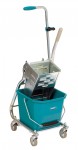 Wózek do pracy na mokro składający się z podwozia z kółkami, wiadra plastikowego oraz wyciskarki ze stali nierdzewnej. Rozmiar (DxSxW) 44x32x100 cm. Pojemność wiadra plastikowego 17 l. Waga wyciskarki plastikowej 4,4 kg. Waga 10 kg.