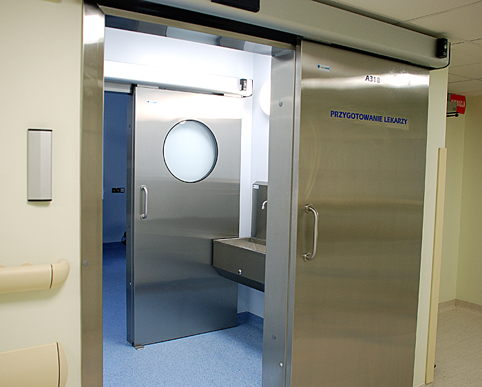 - stal kwasoodporna (drzwi z atestem uwzględniającym zastosowanie drzwi do sal operacyjnych),