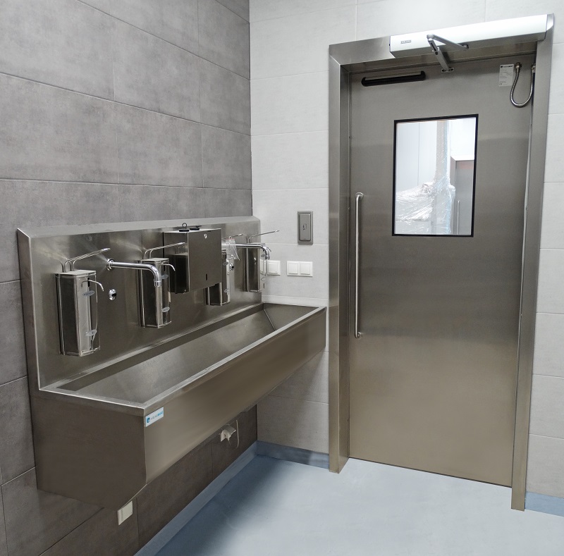 - stal kwasoodporna (drzwi z atestem uwzględniającym zastosowanie drzwi do sal operacyjnych),