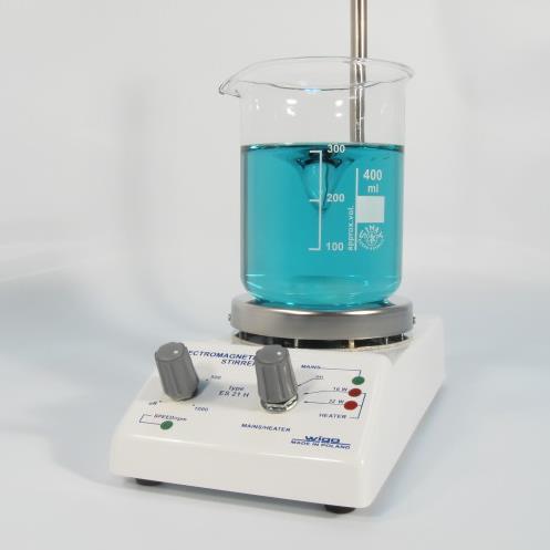 Bezsilnikowe mieszadełko magnetyczne typu ES 21 H jest nowoczesnym urządzeniem do sporządzania roztworów ciał stałych i mieszania cieczy z możliwością podgrzewania. Mieszadełko znajduje zastosowanie w analitycznych laboratoriach medycznych, biochemicznych, chemicznych, w aptekach i wszędzie tam, gdzie zachodzi konieczność intensywnego mieszania cieczy. W odróżnieniu od mieszadeł silnikowych oferowane mieszadełko cechuje możliwość pracy z bardzo niskimi obrotami. Dzięki stabilnym niskim obrotom oraz statywowi jest bardzo przydatne przy miareczkowaniu i rozpuszczaniu łatwo utleniających się odczynników.