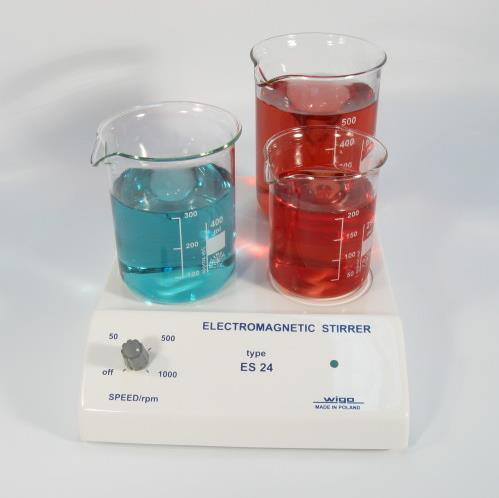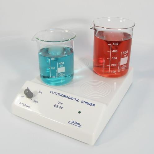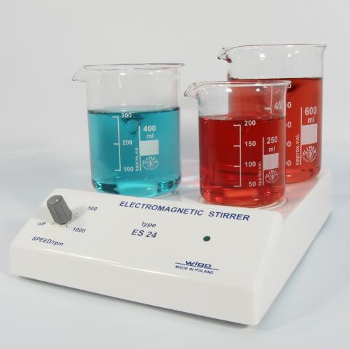 Bezsilnikowe mieszadełko magnetyczne typu ES 24 jest nowoczesnym urządzeniem do sporządzania roztworów ciał stałych i mieszania cieczy z możliwością podgrzewania. Mieszadełko znajduje zastosowanie w analitycznych laboratoriach medycznych, biochemicznych, chemicznych, w aptekach i wszędzie tam, gdzie zachodzi konieczność intensywnego mieszania cieczy. W odróżnieniu od mieszadeł silnikowych oferowane mieszadełko cechuje możliwość pracy z bardzo niskimi obrotami. Dzięki stabilnym niskim obrotom oraz statywowi jest bardzo przydatne przy miareczkowaniu i rozpuszczaniu łatwo utleniających się odczynników.