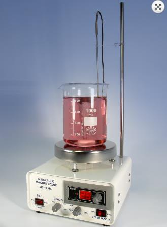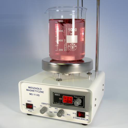 Mieszadełko magnetyczne typu MS 11 HS jest nowoczesnym i wygodnym w obsłudze urządzeniem do sporządzania roztworów ciał stałych i mieszania cieczy z możliwością podgrzewania i utrzymywania zadanej temperatury. Znajduje ono zastosowanie w analitycznych laboratoriach medycznych, biochemicznych, chemicznych, w aptekach i wszędzie tam, gdzie zachodzi konieczność intensywnego mieszania cieczy. Mieszadło o podwyższonych obrotach jest szczególnie użyteczne do prac w laboratoriach weterynaryjnych.