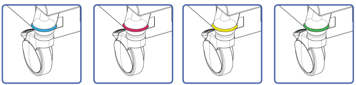 Podstawa jezdna, czterokołowa z hamulcem każdego koła (kolorowe wykończenie do wyboru).