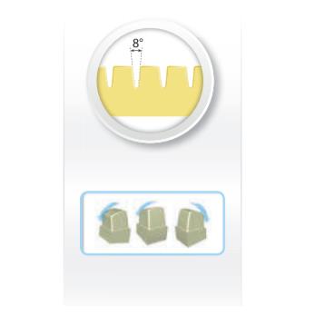 - Dzięki zaokrąglonym kształtom komórek materaca redukowane jest ryzyko rozcięcia skóry lub tkanek pacjenta, zapewniając mu wyższy komfort.