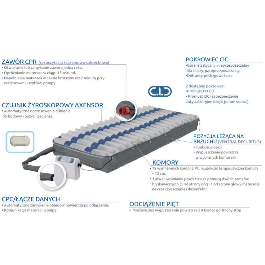 - 3 tryby działania: dynamiczny, statyczny nisko-ciśnieniowy, terapeutyczny