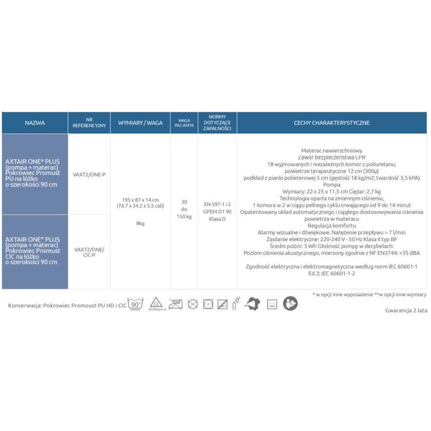 - Materac AxtairOne Plus został stworzony w celu zapobiegania odleżynom u pacjentów o średnim i wysokim ryzyku ich powstania, przebywających w łóżku przez więcej niż 15 godzin dziennie.