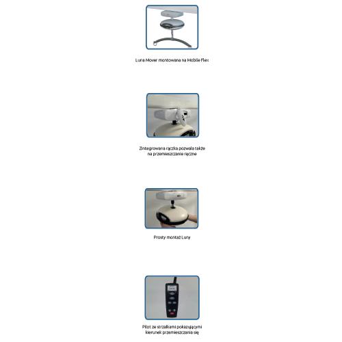 - Luna Mover pozwala opiekunom bez wysiłku wprawić w ruch podnośnik sufitowy Luna wzdłuż szyny za pomocą pilota, niezależnie od wagi pacjenta i postury opiekuna.