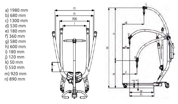 - Zakres pracy podnośnika pozwala na podnoszenie pacjenta bezpośrednio z podłogi oraz na wspomaganie chodzenia.