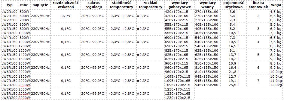 - Wszystkie Łaźnie LWR jak i zastosowany element grzejny produkowane są z wysoko gatunkowej stali nierdzewnej - kwasodpornej 0H18N9, w wersjach 2, 3, 4, 5 oraz 6 stanowiskowych.