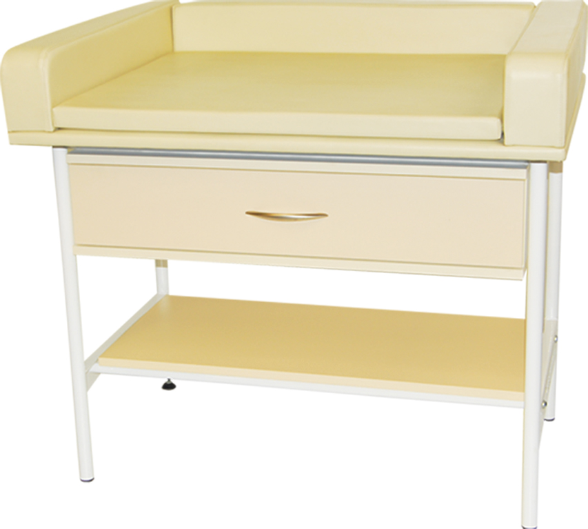 Stolik przeznaczony jest do wykonywania badań oraz pielęgnacji niemowląt w przychodniach oraz gabinetach lekarskich. Stolik do badań niemowląt jest wykonany z rur stalowych malowanych proszkowo. Posiada stałą wysokość. Blat z trzech stron zabezpieczony jest wysoką pianką natomiast na spodzie posiada wygodny wyjmowany materac, co ułatwia utrzymanie stolika w czystości.
