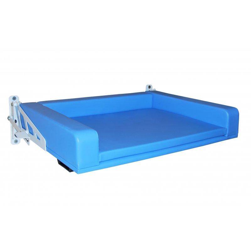 Składany stolik do badań niemowląt posiada stalowe wsporniki malowane proszkowo. Mechanizm opuszczania stolika posiada zabezpieczenie przed samoczynnym opadnięciem blatu. Blat z trzech stron zabezpieczony jest wysoką pianką natomiast na spodzie posiada wygodny wyjmowany materac, co ułatwia utrzymanie stolika w czystości. Składany stolik przeznaczony jest do wykonywania badań oraz pielęgnacji niemowląt w przychodniach oraz gabinetach lekarskich.
