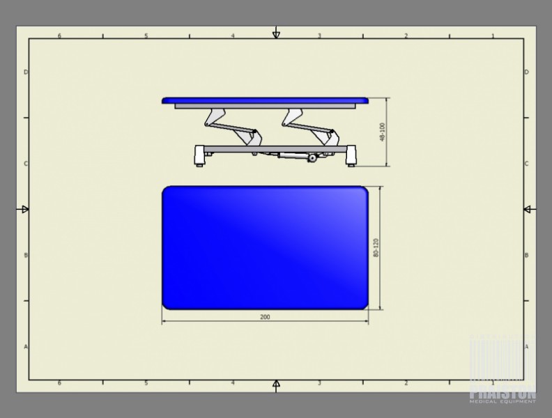 • Elementem charakterystycznym tego stołu jest szeroki blat, który umożliwia prowadzenie ćwiczeń metodą Vojty i Bobatha,