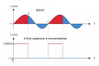 Podczas fazy wydechu gdy koncentrator tlenu odbierze sygnał z CPAP, zmniejszy ilość tlenu na wyjściu i zwiększy w fazie wdechu.