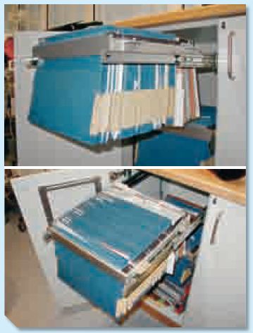 Rama na teczki zawieszane z eloksalowanego aluminium.