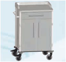 Wózek do pielęgnacji, szer. 1 ISO, wys. 1000 mm z drzwiami i szufladą.