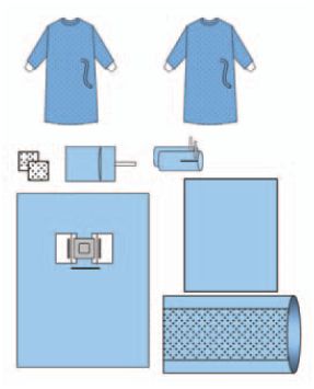 Chirurgiczne obłożenia barierowe Alpha-Tex występują tylko w wersji wyjałowionej. Elementy i całe zestawy są pakowane w opakowania typu Tyvec-folia zgodne z wymogami normy EN ISO 11607:2006. Wyroby Alpha-Tex są sterylizowane radiacyjne w zwalidowanym procesie sterylizacji zgodnym z wymogami normy EN ISO 11137-1:2006. Zestaw składa się z: 1 x serweta na stolik 100 x 150 cm, 1 x serweta okulistyczna ZR 140 x 240 cm z folią op., i dwoma kieszeniami na płyny, 1 x serweta na stolik MAYO 80 x 140 cm, 1 x osłona na faco 45 x 65 cm, 2 x osłony na kończyny górne 35 x 70 cm, 1 x fartuch chirurgiczny rozm. M, 1 x fartuch chirurgiczny rozm. XL, 4 x ręcznik do rąk.
