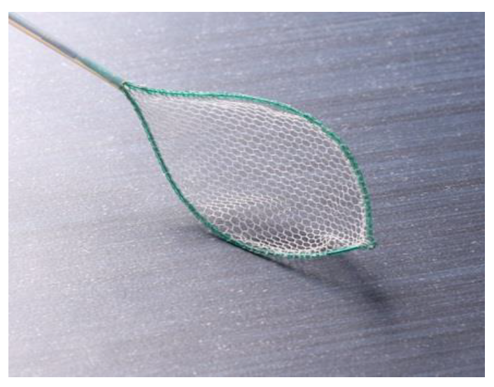 Pętla z siateczką jednorazowego użytku, siatka rozpostarta na pętli o wymiarach 30 x 60 mm,