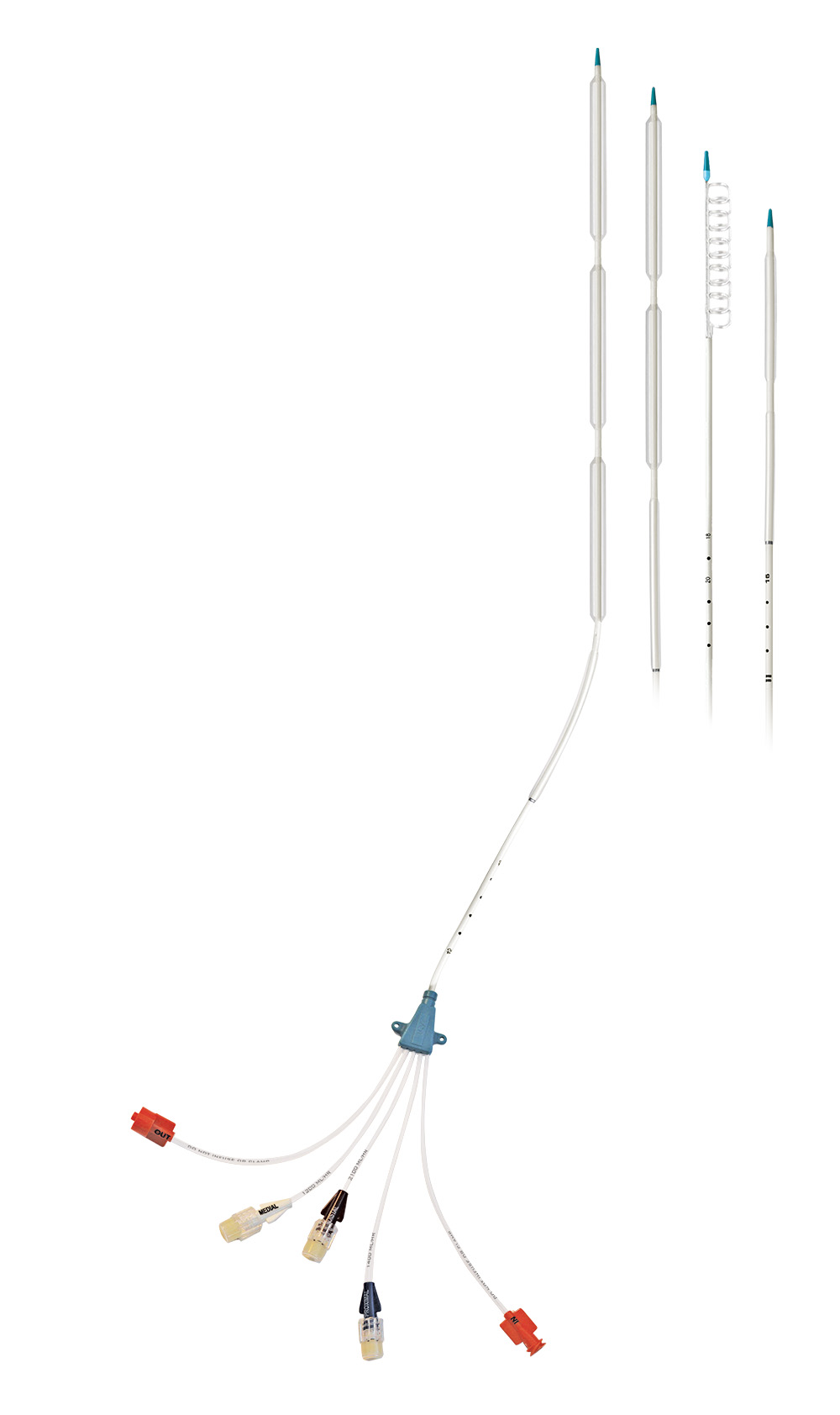 W zależności od preferowanego miejsca cewnikowania i wydajności, dostępne są 4 rodzaje cewników balonowych kompatybilnych z aparatem: