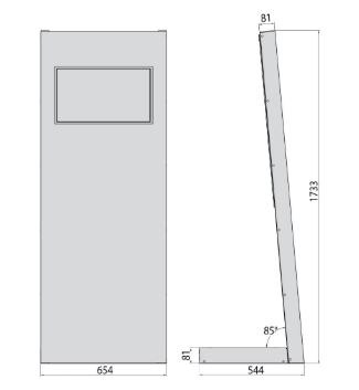 Płyta czołowa infokiosku jest nachylona pod kątem 85° względem podłogi.