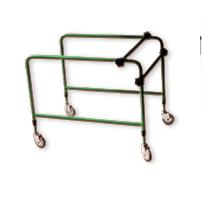Balkonik do nauki chodzenia z siedzeniem. PRZEZNACZENIE: Dysfunkcja kończyn dolnych, po urazach, w schorzeniach ortopedycznych, neurologicznych i reumatologicznych oraz przy amputacjach kończyn dolnych. OPIS: Konstrukcja wykonana z lekkich rur stalowych pomalowanych metodą proszkową, osadzona na czterech kółkach jezdnych gumowych. Balkonik posiada regulację wysokości.