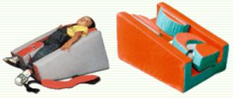 Klin do leżenia dla dzieci z ograniczeniem motorycznym do 8 lat. Nr katalogowy - R/03001. Klin wykonany jest w kształcie korytka z pianki poliuretanowej obszytej materiałem skóropodobnym, który ułatwia utrzymanie czystości. Klin wyposażony jest w podtrzymujące dziecko kształtki mocowane na „velcro”. Materiał wykończeniowy dostępny w wielu kolorach.
