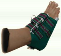 Kamaszek z tkaniny. Kamaszki stosuje się do wyciągów oraz ćwiczeń w kabinie Uniwersalnego Gabinetu Usprawniania Leczniczego. Kamaszki wykonane z z tkaniny, paski zapinane od góry za pomocą taśmy "velcro", wyposażony w metalowe półkółka do zawieszania.